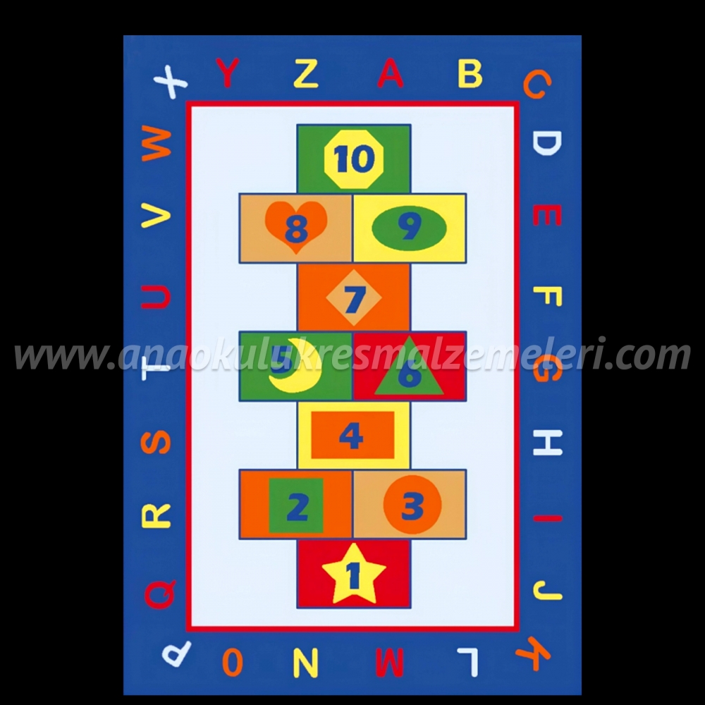 Halı yüzeyinde 1’den 10’a kadar rakamlar, alfabe harfleri ve kare, daire, üçgen, yıldız, ay, sekizgen gibi farklı geometrik formlar bulunmaktadır. Çocuklar seksek oynarken sayı sıralama becerilerini geliştirir, şekilleri tanımayı öğrenir ve harflere karşı farkındalık kazanır.